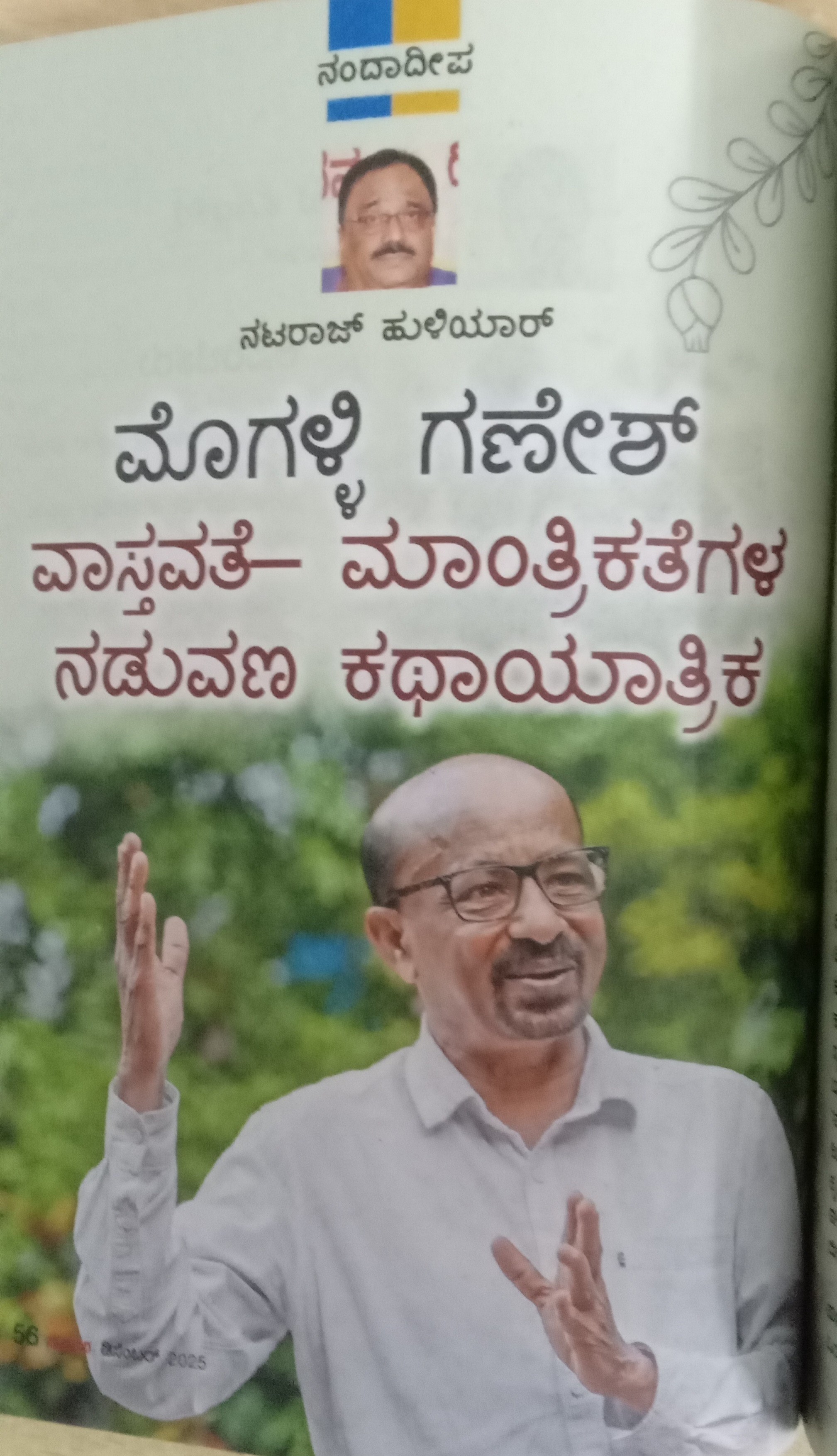 ಈ ಅಂಕಣ ಬರೆಯುವ ದಿನ ಬೆಳ್ಳಂಬೆಳಗಿಗೇ ಮೊಗಳ್ಳಿ ಗಣೇಶ್ ಕುರಿತ ‘ಮಯೂರ’ದ ಲೇಖನ ಓದಿ ಹಿರಿಯ ಲೇಖಕ ಶೂದ್ರ ಶ್ರೀನಿವಾಸ್,‘ಮೂವಿಂಗ್ ಆಗಿದೆ’ ಅಂದರು. ಮೊನ್ನೆ ಗೆಳೆಯ ಚಂದ್ರಶೇಖರ ಐಜೂರ್ ಕೂಡ ಈ ಬರಹ ಓದಿ ಎಮೋಶನಲ್ ಆಗಿದ್ದರು.